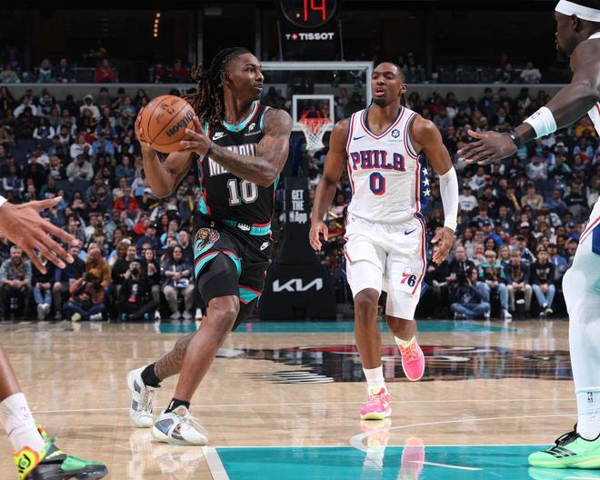 76人過去3場連輸籃網、公牛與雷霆遭遇3連敗,灰熊上一場客場112-116惜敗奇才。本場76人缺少烏布雷、沃特福德,灰熊缺少伊迪、波普與克拉克等。首節開局76人被灰熊壓製3-9落後,並在之後繼續被拉開7-17落後差距,馬克西連攻帶傳引領一波14-5攻勢追到僅差1分。阿爾達馬與馬克西對攻一記三分,灰熊連得5分擴大優勢,76人一波10-4攻勢追到34-34,灰熊連得6分,首節結束76人34-40落後灰熊。首節76人26中14,其中三分10中4,馬克西6中5得到12+2+2;灰熊23中15,其中三分11中7,均是超過6成準星。